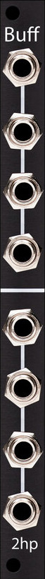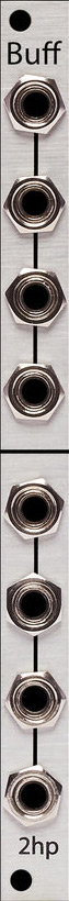the 2hp buff is a buffered multiple capable of splitting an input signal to multiple outputs. due to its active architecture, inputs retain their full integrity as they are copied to multiple destinations. one