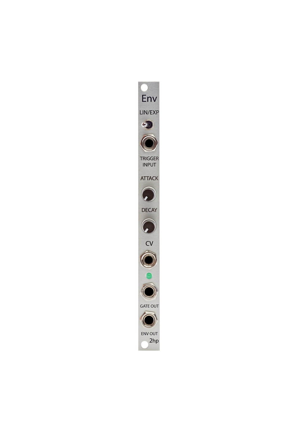 env is a multimode envelope capable of producing shapes that are short and snappy, or long and smooth. linear and exponential shapes are accessible.
