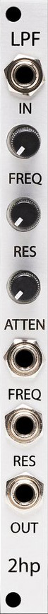 lpf is a four-pole, voltage controlled low-pass filter. its 24 db per octave slope and ota topology provide a smooth, buttery character. resonance can be pushed to self oscillation, turning it into a sine