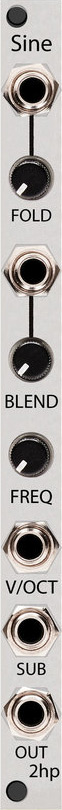 in addition, both outputs have an internal wavefolder that adds harmonic content to the signal allowing for spectrally complex tones within a single module. keep your tones pure (or not!) with sine.