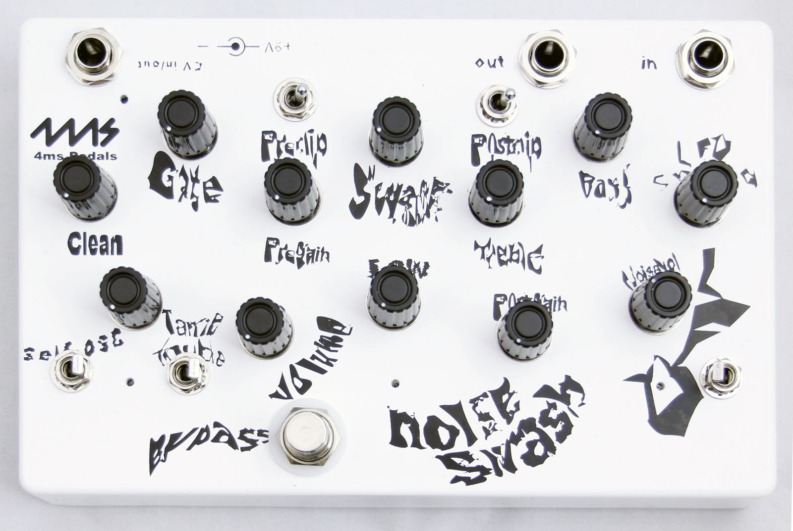 plus all the features of the standard swash (pregain, preclip, bass, treble, low, swash, noisegait, postgain, volume, self-osc, self-osc stomp, bypass stomp).