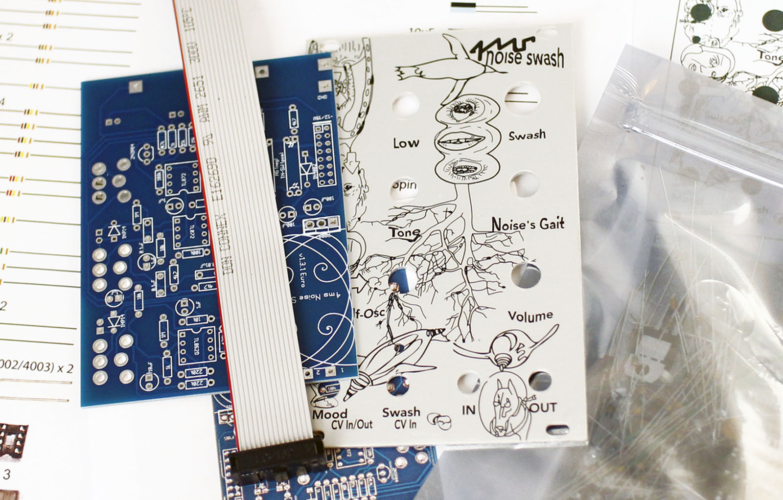 the do-it-yourself kit includes all the parts necessary to build a fully-featured eurorack noise swash. this is an intermediate-level kit, you need some prior experience, and have basic hand tools (flush