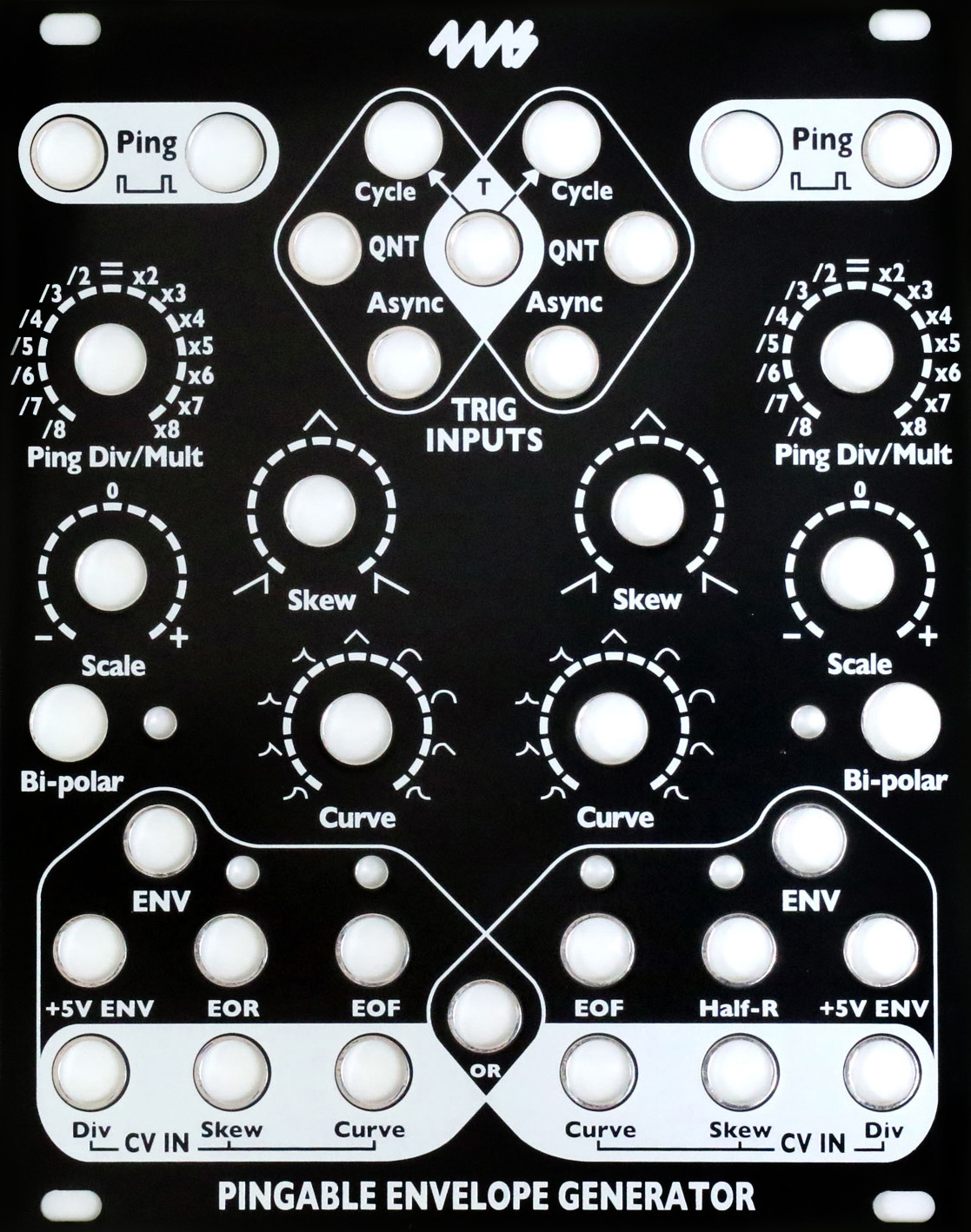 diy replacement faceplate for the pingable envelope generator. black background with white artwork. no soldering required.