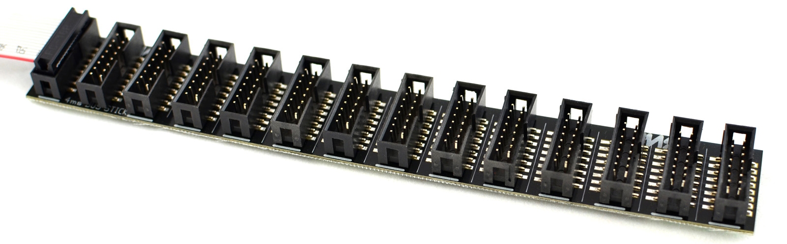 a set of easily soldered holes for using large gauge wire or mta156 connectors to connect to distribution bus boards.