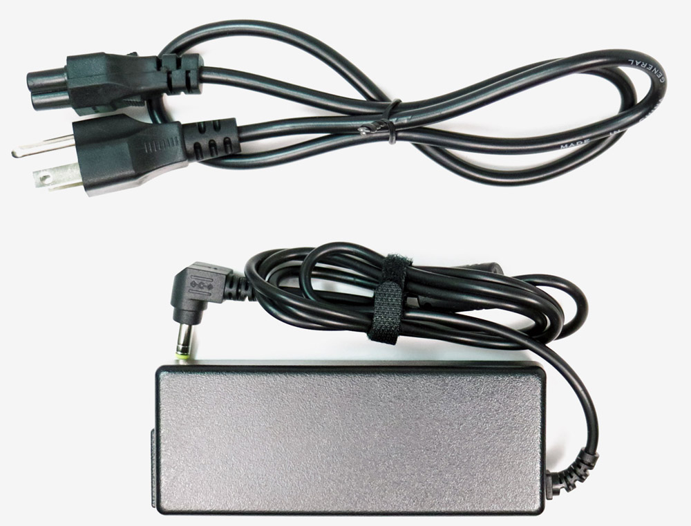 powered by laptop-style dc power supply: 2.1mm barrel, positive center, 15v-20v.