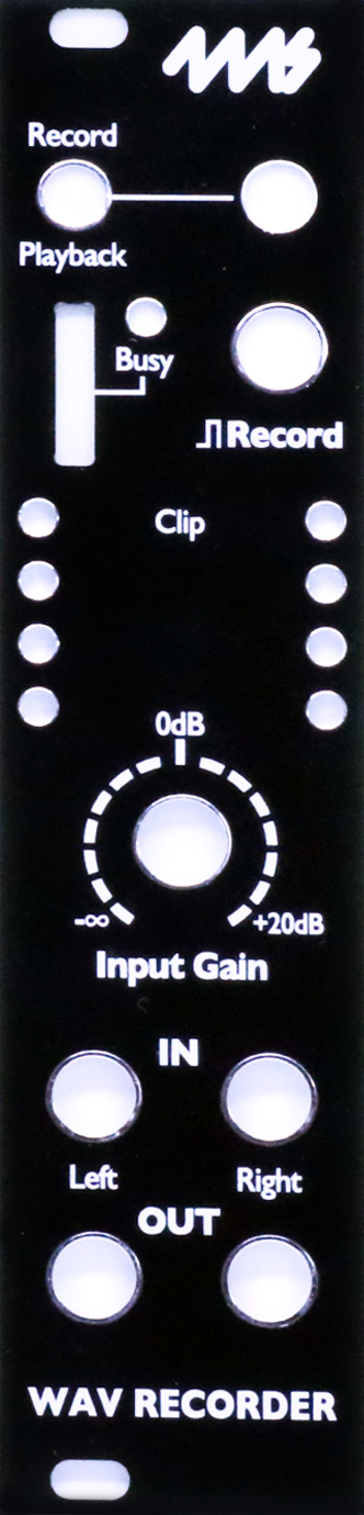 diy replacement faceplate for the wav recorder. black background with white artwork. no soldering required.