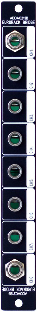 a pair of addac213bs can be used in standalone to send/receive 8 cv or audio signals between different points inside the same case or as an expansion to the main pair of eurorack bridge modules, the