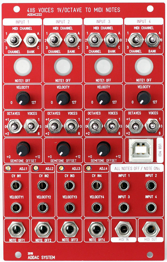 addac system addac222 4x6 voices 1v/octave to midi notes