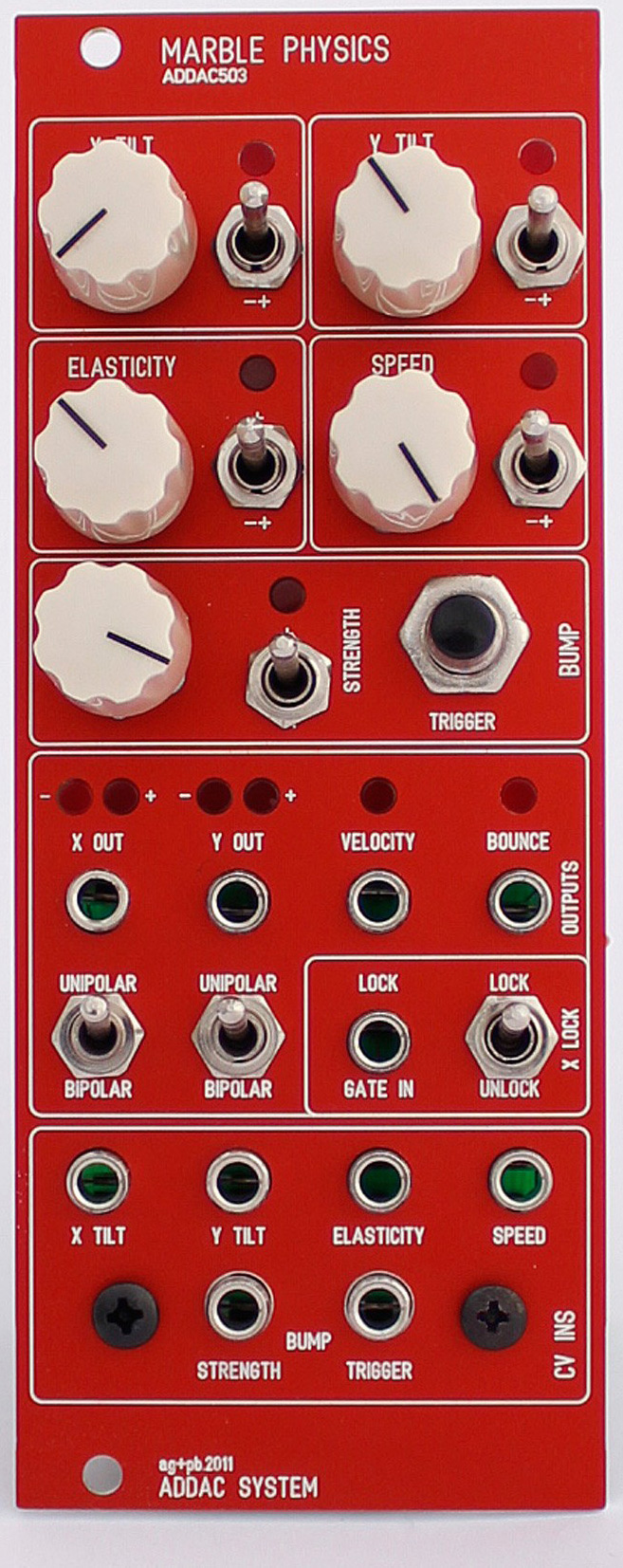 newtonian physics on a modular synth! the addac503 marble physics is a cv generator based on the mechanics behavior of a marble on a tray.