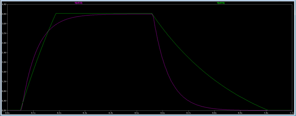 at a quick glance the rise and fall slopes appear to be straight lines but this is not true and it is not a perfectly integrated slope, it still has a slight exponential curve on both the rising and falling