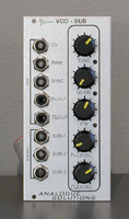 | vco-sub the vco has the benefit of glide (portamento) built in as standard and also features pw control, sync in and separate saw and square outs. price : $145.00