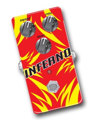 the inferno is a high gain, full range vintage germanium and silicon transistor fuzz. it has an incredibly dense, rich sound, not to mention some tasty sustain and compression.