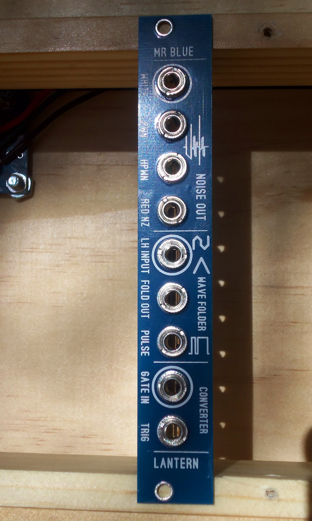 this new 4 HP module from blue lantern combines some very useful functions. it has a good sounding analog noise generator, a lockhart wave folder audio processor and a utility gate to trigger converter.