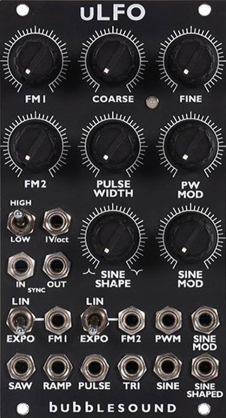 the ulfo is an voltage-controlled analog low frequency oscillator based around a classic triangle core vco running through a series of waveshapers, giving the user an extremely