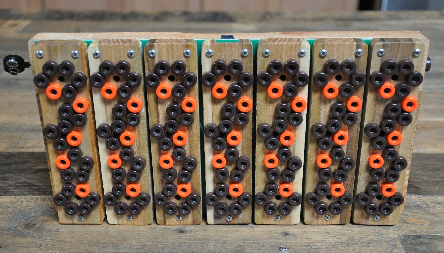 output and input. however, sometimes you just want an output, perhaps for voltage control of a manifesting gong. so, each roll has one orange jack that yields a square wave at the tempo of the roll.
