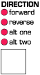 there are 5 stage directions. these are forward, reverse, alt one, alt two and random. alt one and alt two are pendulum modes, with the alt one doubling the first and last stage in the sequence. random is not