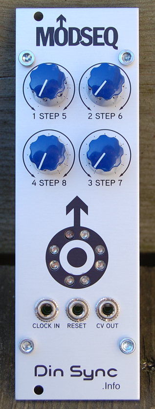 the modseq is a low cost, low hp, 8 step auxiliary sequencer. as the name implies its primary duty is for modulation, however it will function perfectly well as a note sequencer. since the modseq has only 4