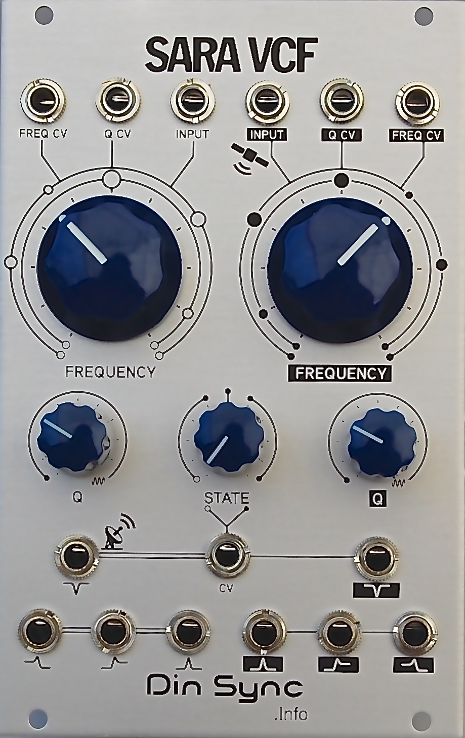 the sara vcf is a fully voltage controlled state variable filter with dual "opposing" self oscillating cores. the tone capabilities can range from delicate to outrageous and all stops in between. everything from