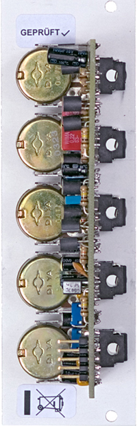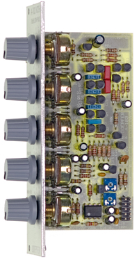 module a-103 is a voltage controlled low pass filter with 18db/octave slope. the circuit is based on a modified transistor ladder (moog ladder) and is a reproduction of the legendary tb303 filter.
