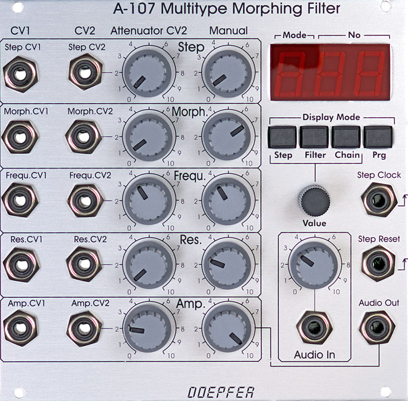 module a-107 is a completely new voltage controlled filter that has available 36 filter types: different versions of low pass, high pass, band pass, notch, all pass and filters
