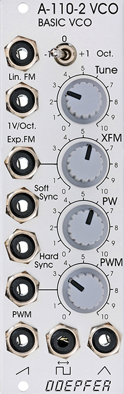 module a-110-2 is a low-cost voltage-controlled oscillator. it's a slightly reduced version of the standard vco a-110-1. compared to the a-110-1 the a-110-2 has no sine output and the (expensive) octave