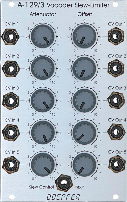 the five-way vc slew limiter / offset generator / attenuators (a-129 /3) and slew controllers (a-129/4) are particularly designed for this purpose. module a-129 /3 includes 5-way attenuators, 5-way offset