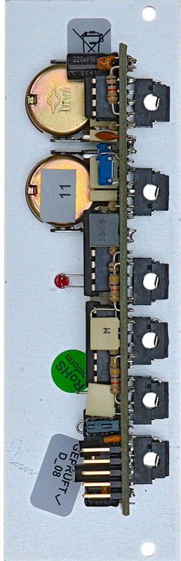 this module has a maximum current draw of 30ma. it requires 8 te/hp worth of space to fit in a eurorack frame.