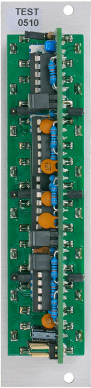 unit #2 can be normalled to unit #3 and those of unit #3 to unit #4. if the normalling is not desired the jumpers have to be removed. in addition the sum of all four outputs is available (bottom left socket