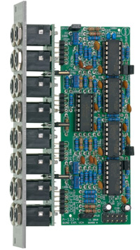 (i.e. all four vca output signals are added). by removing of one or more of the jumpers one can choose which vca output is added to the sum. the jumpers can be replaced by switches too.