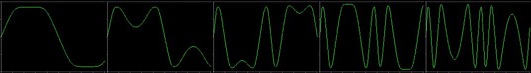 left picture (the original sine wave is only a little bit clipped in this picture). changing the multiples parameter from low (left picture) to high (right picture), manually or with an external control