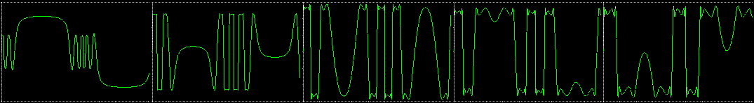 others remain unchanged (remember: all parameters can be modified at the same time with 4 different control voltages)! for all pictures as input a sine wave was used and can be recognized best in the upper