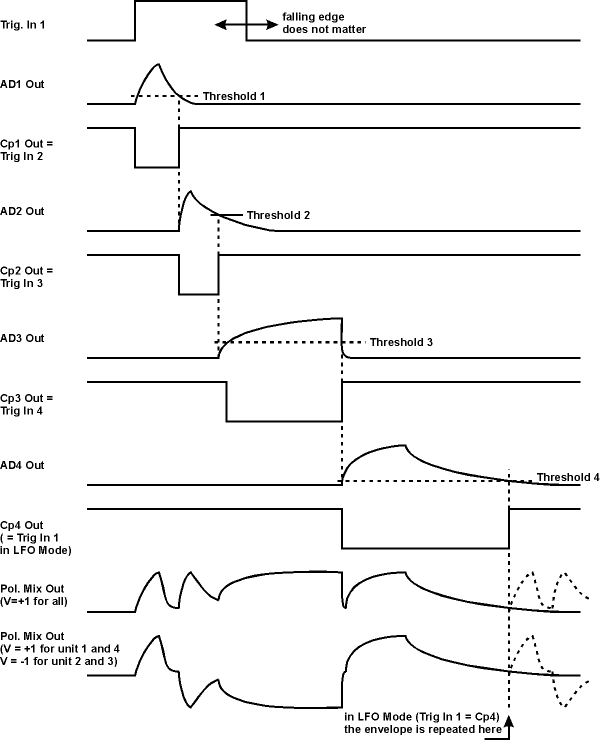 the four units can be used as separate ad generators or lfos. in any case the mix signal is available (e.g. mix of four ad generators or