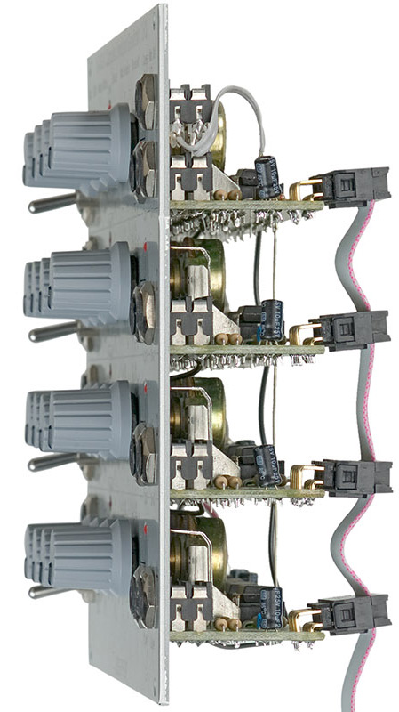 the picture shows the principle of the module with four daisy-chained ad units (as predetermined by the normalled sockets), that are mixed