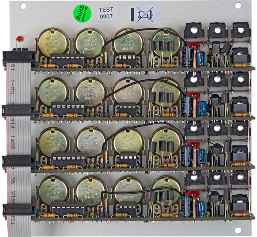 the a-143 series of modules contain multiple modulation sources. module a-143-2 is a four-fold adsr type envelope generator. other modules of this series are the complex envelope generator a-143- (quad ad)