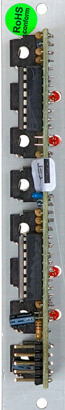 either of two inputs to one output. voltages in the range -12v...+12v at the o/i resp. i/o sockets can be processed by the module.