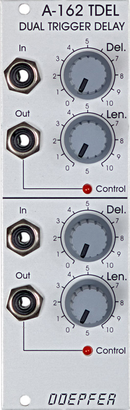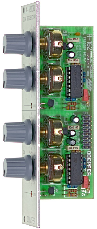 module a-162 contains two separate delay circuits for trigger signals. this module makes it possible to delay the onset of a trigger pulse, and also change its length.