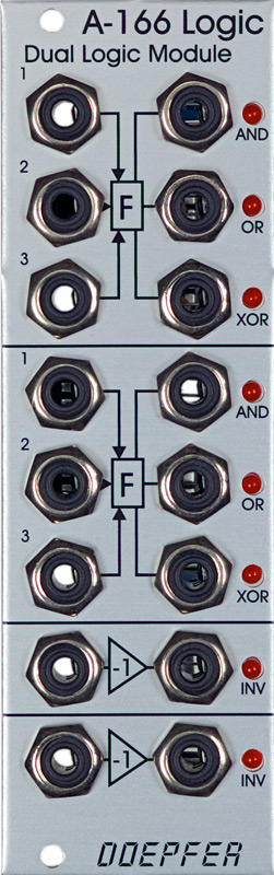 applications: combination of digital signals of the a-100 (e.g. gates, clocks, triggers), e.g. to obtain "gated" clocks or certain rhythmic patterns.