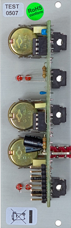 both slew limiters have two leds each, to show the state of the rising and falling voltages.