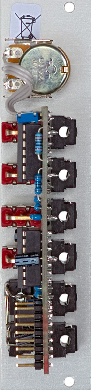 the module is equipped with 4 outputs: three non-invertíng and one inverting ouput. an internal jumper can be used to connect the non-inverted or inverted output to the cv line of the a-100 bus. that way the