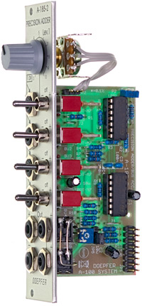 module a-185-2 is a precision control voltage adder/buffer. precision means that the amplification of the inputs without attenuators is exactly 1.00 and is suitable to add control voltages for the pitch
