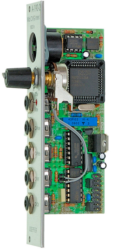 module a-190-2 is an economically priced alternative to the midi-cv/sync interface a-190-1. it can be used in all cases where the additional features of the a-190-1 are not