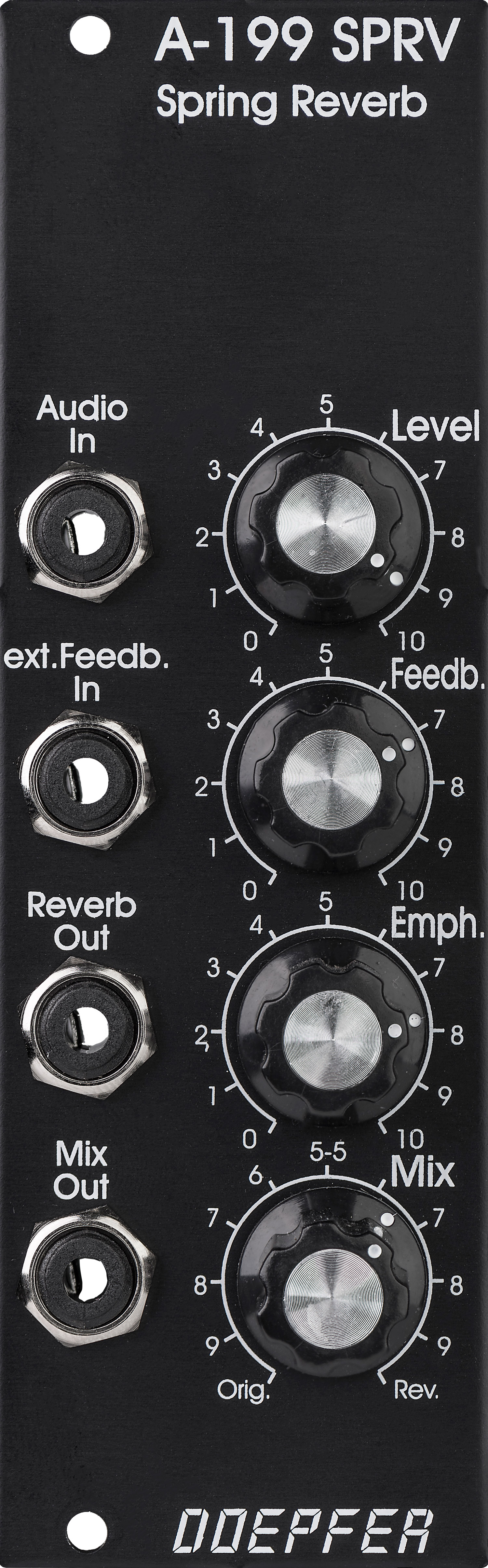 module a-199 is a spring reverb module. the reverb effect is electronically simulated by means of 3 spiral springs. spring reverb systems have a very characteristic sound that is based on the (insufficient)