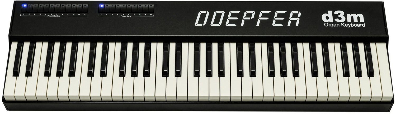 the basic part of the modular d3m system is the keyboard module d3m. d3m contains a 5 octave manual with feeling and looking modelled on the classic examples (so-called waterfall keyboard with ivory keys). in