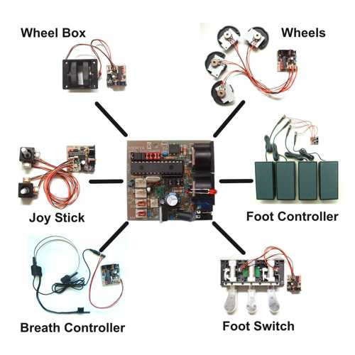 the elements connected to we (e.g. wheels, joy sticks, foot controllers, normal potentiometers, foot switch) are not included but have to be added or purchased in addition by thecustomer.
