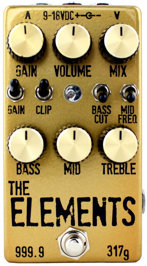 the elements starts with the cleanness, a simple op amp buffer and booster with active tone controls for bass, mids, and treble. a few things were added to this platform such as the option to limit the bass