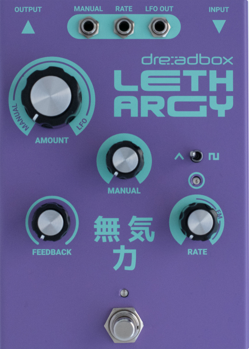 dreadbox lethargy is an ota based phase shifter effect pedal suitable for fretted instruments and synthesizers, with eurorack patch compatibility.