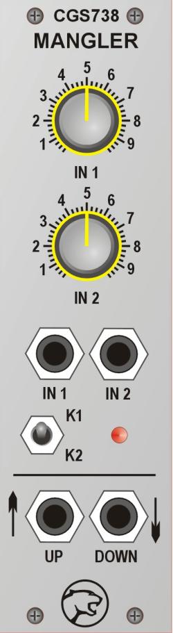 the mangler is a euro-version of the cgs38 saw pitch shifter from ken stone. it is a combination of op-amp summers and comparators with surprising results, ranging from complex wave shaping to pitch shifting of