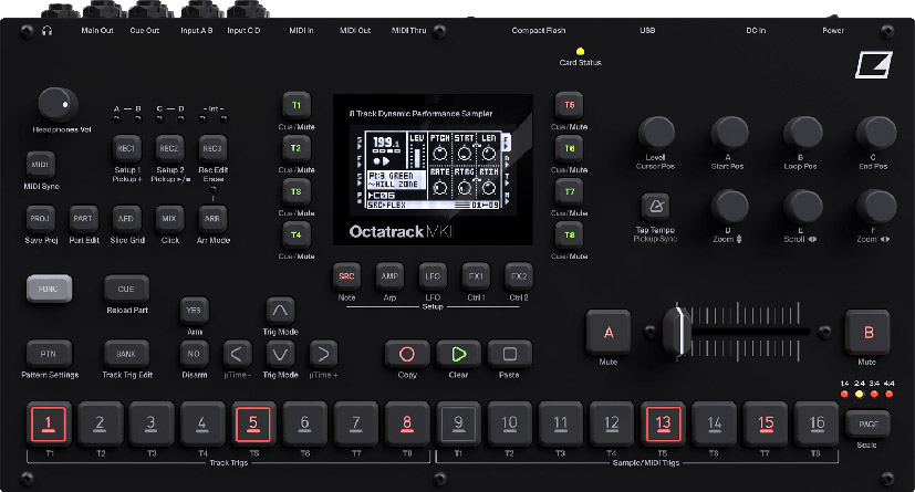 octatrack mkii is improved, enhanced and modified. a better version of itself, built to mangle samples in demanding environments. ensured by: high quality buttons and hi-res encoders, a crisp oled screen with