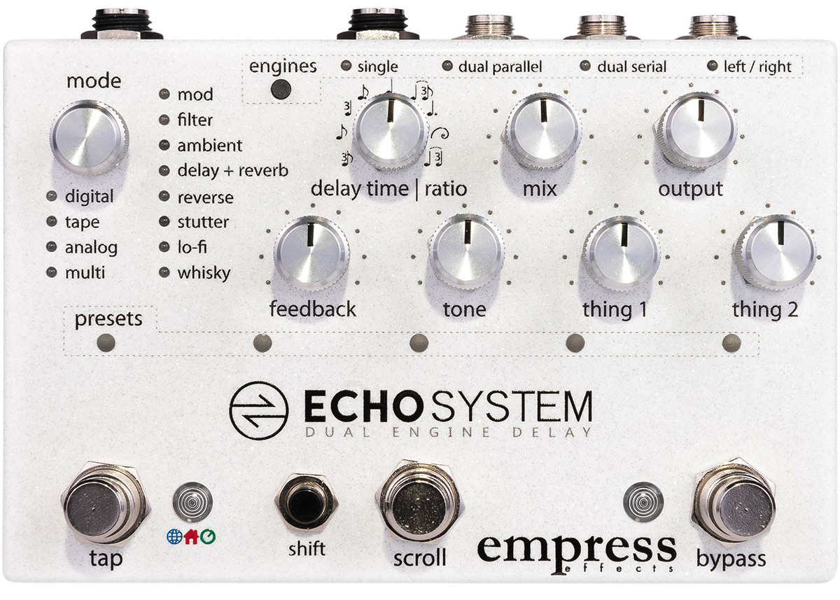 well as empress' own take on each of these delay styles. moving beyond the traditional, the vast amount of sonic ground the echosystem can cover becomes apparent. check out the ambient modes when you're