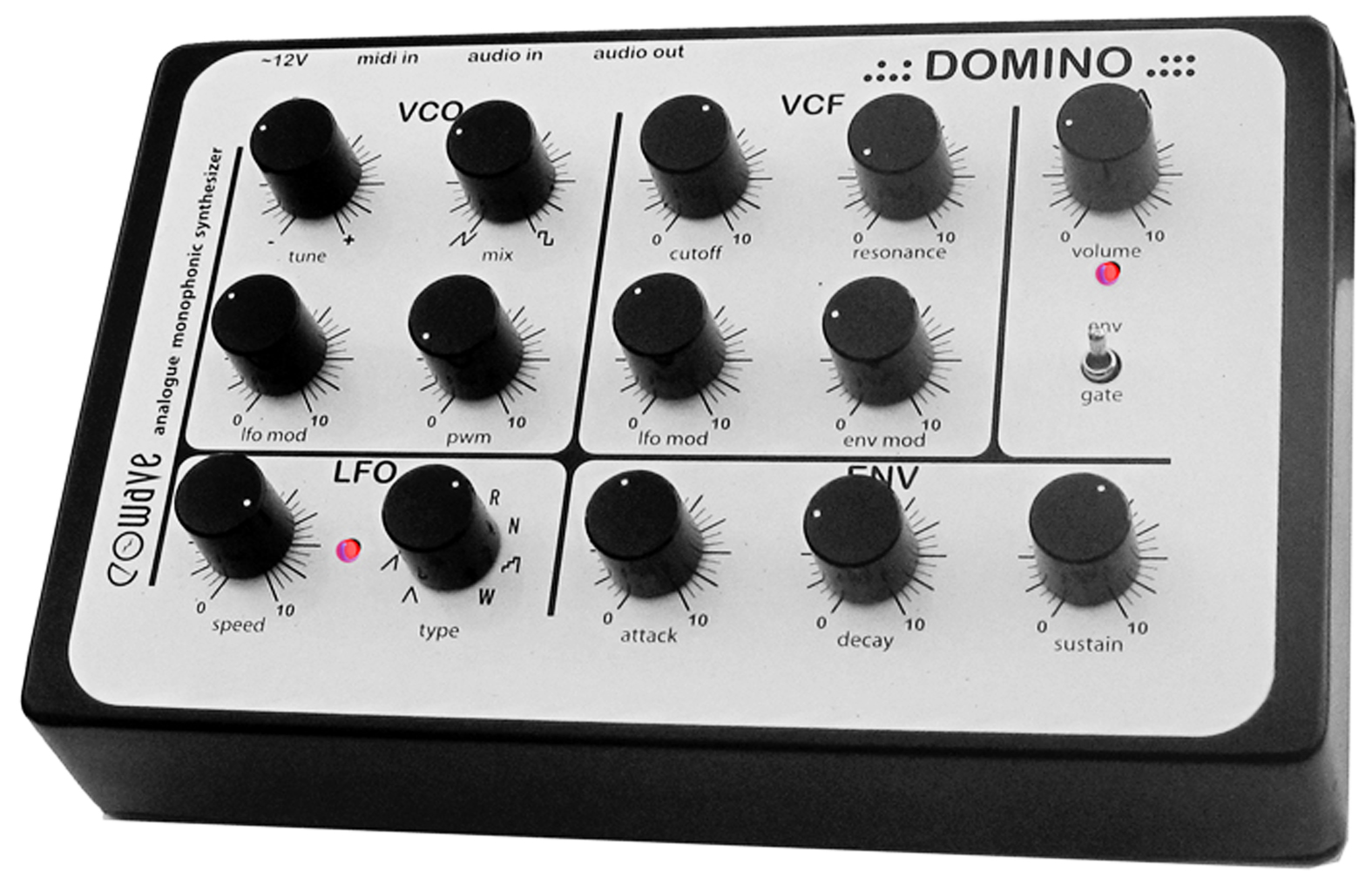 .:.:domino.::: is a discrete analogue synthesizer with a vco in the tradition of ms20 and tb303. the vco, filter & vca are transistor made. this transistor architecture gives .:.:domino.::: a unique raw